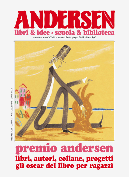 A tal proposito non posso non concludere con la copertina per questo numero. Così come aveva fatto Mauro Evangelista nel 2008, sulla spiaggia di Sestri (resa con pochi tocchi vibranti) c’è uno snodato, ineffabile, azzimato, allampanatissimo Hans Christian Andersen. Con le lunghe dita, sta plasmando un castello di sabbia che ha la forma del nostro logo. Ma a me piace interpretarlo anche come una fiamma che scalda e rasserena.