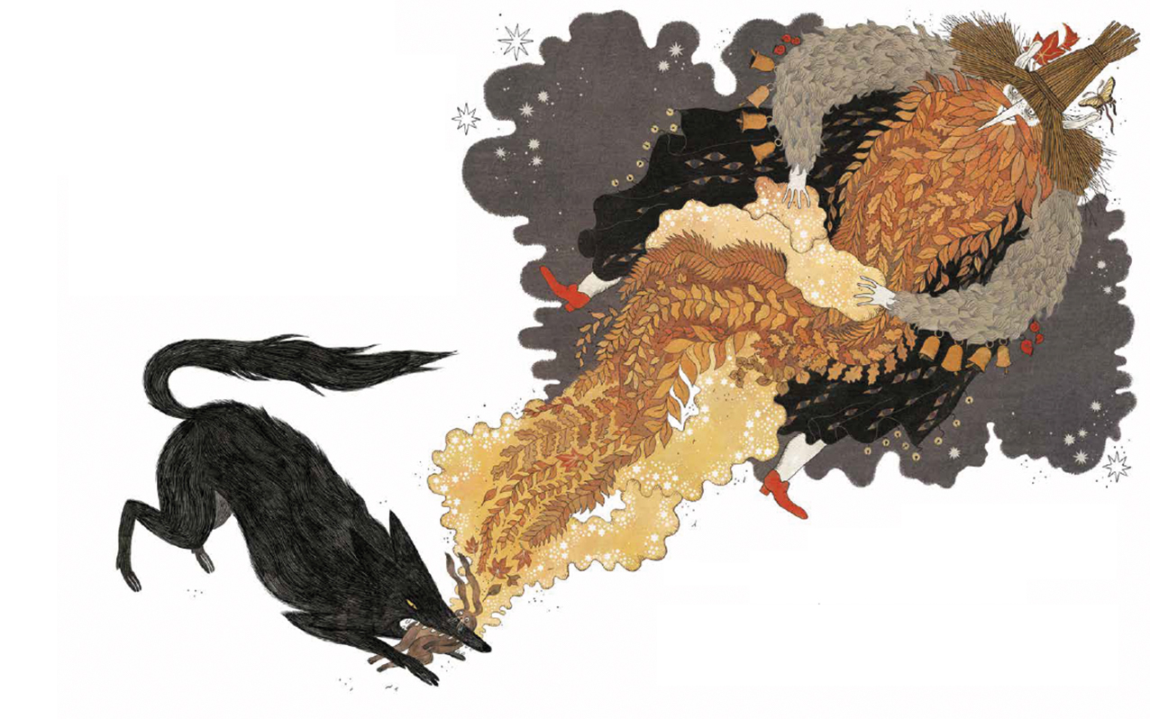 Qui già si dispiega, oserei dire trionfa, un fecondo, colto e composito universo figurativo che, parzialmente, avevo citato recensendo, nel numero 411 della nostra rivista, Lo strambo trasloco della magione Miller. Una storia vera (L’ippocampo), Premio Andersen 2024 per la fascia 9/12 anni. Storia divertente e intrigante, fra vecchio West dei pionieri, miniere d’argento, osteggiati allevamenti di maiali e indiscutibile fascino della lontana Europa. Il tratto ironico e incalzante dell’autrice indugia con tono affabile su personaggi, paesaggi e animali cavandone ripetute e saporose sottolineature che sornionamente giocano con la vicenda, raccontata con ribalda bravura da un finissimo scrittore come Dave Eggers. Citavo allora il russo Ivan Bilibin, Edmund Dulac e Kay Nielsen. Nomi che ritrovo anche in altre sue opere, evocati sempre in piena, garbata e consapevole autonomia.