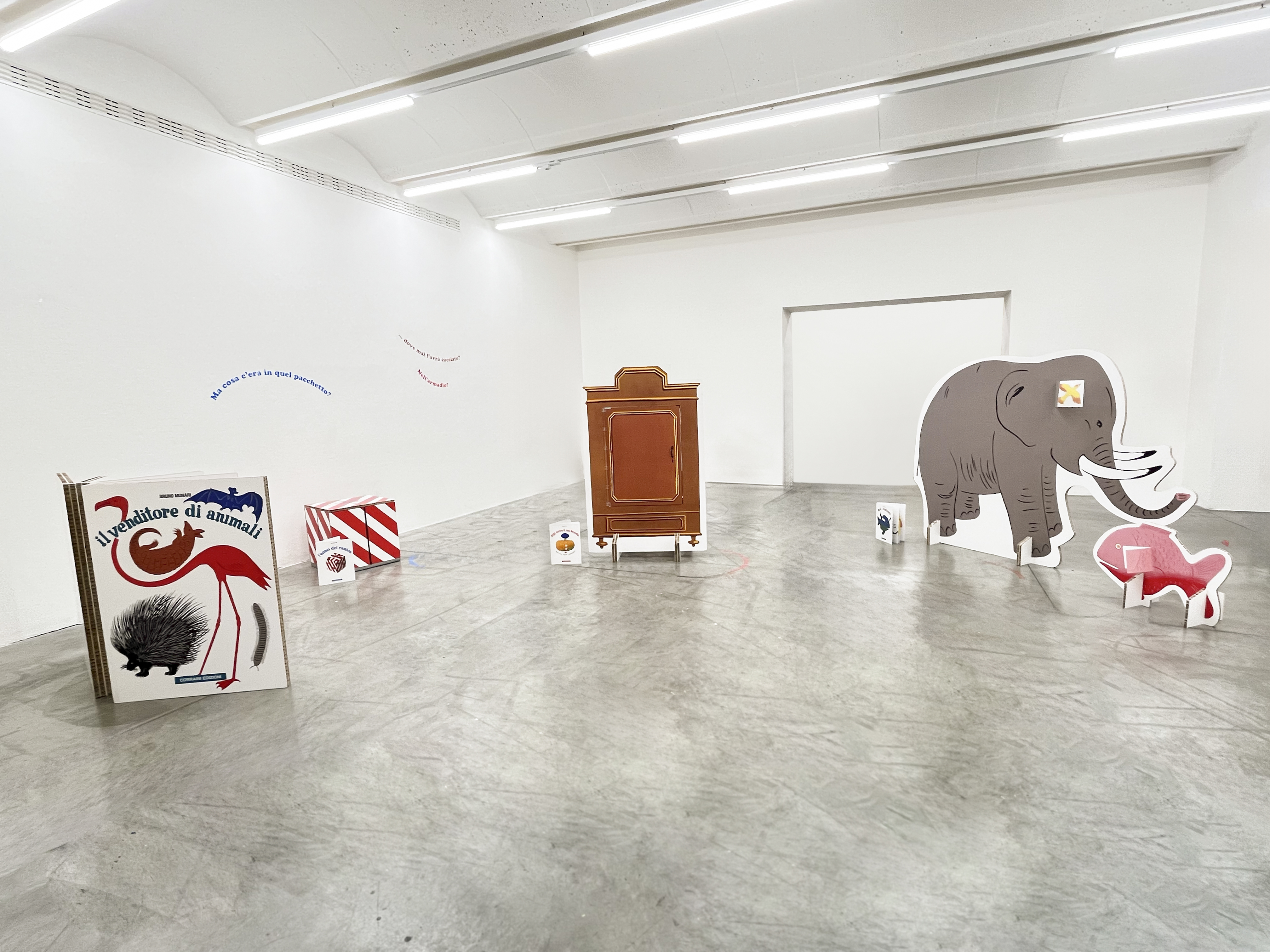 La mostra progettata da Corraini al MAMbo prende alla lettera questo approccio ludico e interattivo. Non è solo un’esposizione da guardare, ma uno spazio da esplorare con il corpo e tutti i sensi. Il visitatore, grande o piccolo che sia, è invitato a entrare dentro le storie: le riproduzioni in grande formato dei libri permettono infatti di aprire armadi e finestre, sbirciare dai fori nel cartone, aprire pacchetti regalo, muovendosi liberamente tra le pagine di Toc Toc, Mai contenti, Buonanotte a tutti, Il venditore di animali, Il prestigiatore verde, Il prestigiatore giallo, Storie di tre uccellini, L’uomo del camion, Gigi cerca il suo berretto. È un invito a riscoprire lo stupore, a capire che “dentro qualcosa c’è sempre qualcos’altro” e che la cultura è fatta di sorprese.
