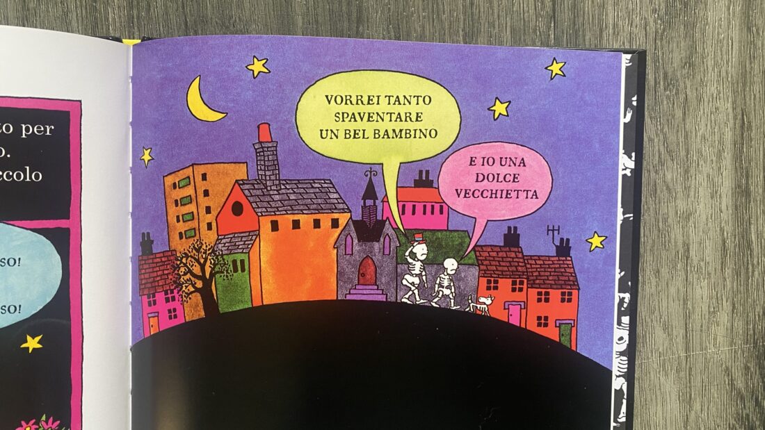 Ossaspasso di Janet & Allan Ahlberg (trad. Chiara Carminati, Camelozampa) – Uno scheletro piccolo, uno scheletro grande e uno scheletro cane che escono a passeggiare nella notte e stanno per dimenticarsi… di spaventare qualcuno. Peccato che ormai siano tutti a letto: che cosa potranno inventarsi? Un albo illustrato al confine con il fumetto; una storia perfetta, anche grazie al ritmo dato alle parole da Chiara Carminati.